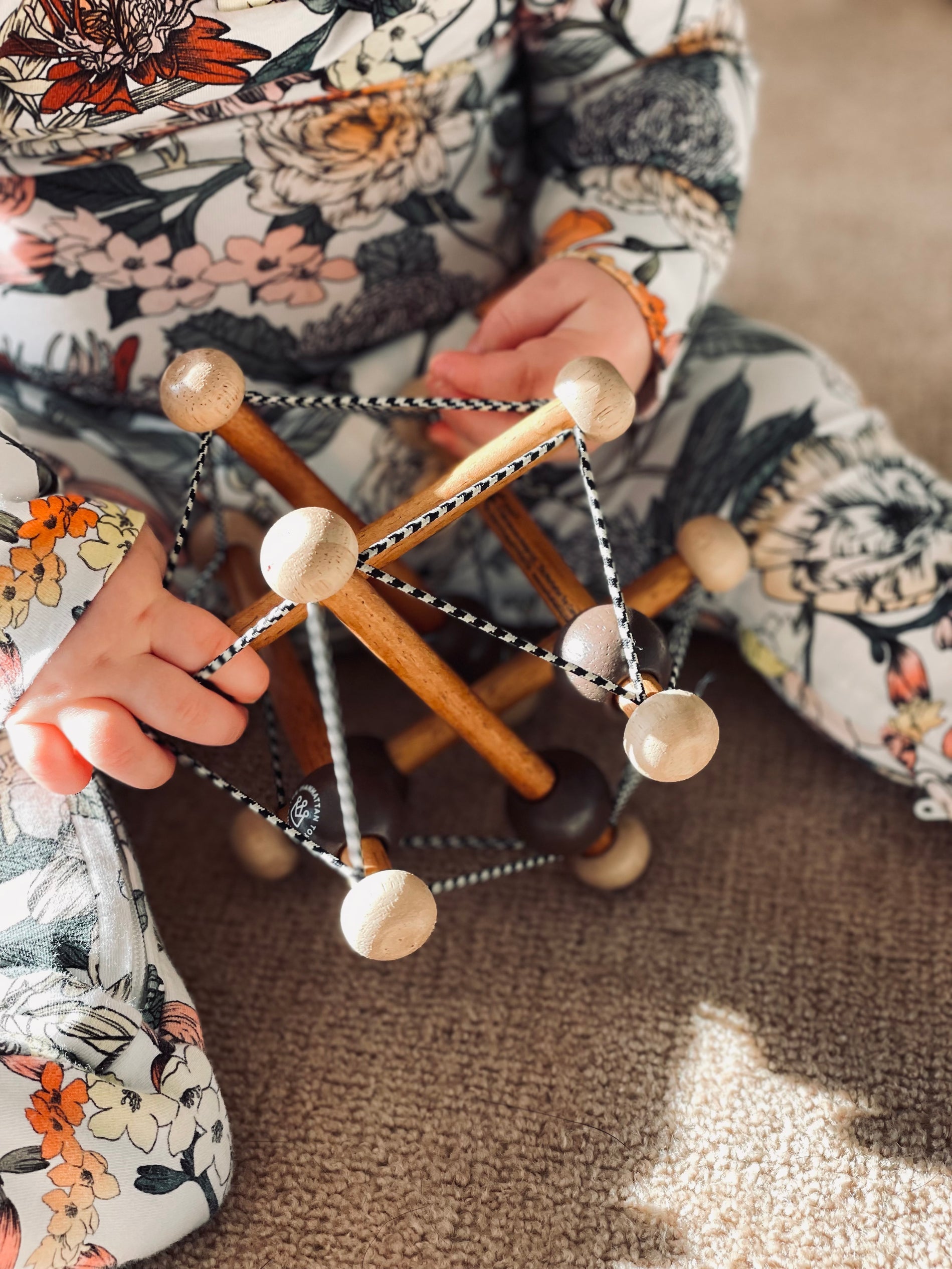The award winning Skwish is a multi-sensory toy, providing unlimited infant entertainment. It Skwishes down and then bounces back to its original shape, with beads that slide and rattle. Crafted from renewable rubber wood and strung together with durable elastic cord, it is perfect for little hands. This beautiful piece functions as a rattle, teether and multi sensory grasping toy. It introduces the concept of cause and effect while boosting the development of important gross motor skills such as grasping and reaching. A beautiful design that will sit proud in any nursery or playroom.