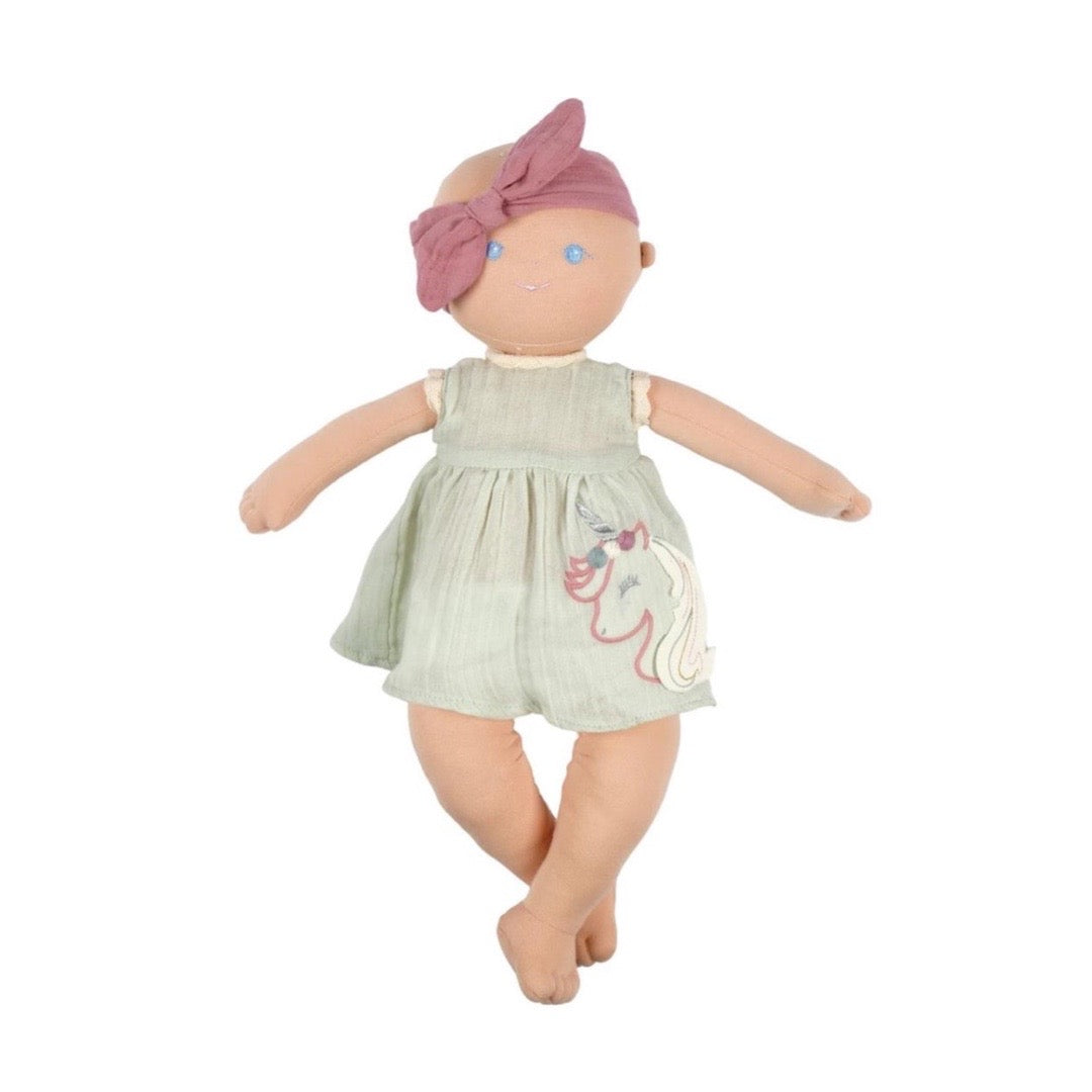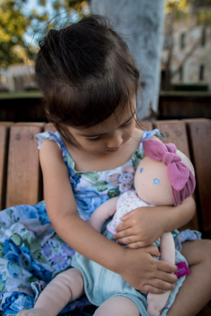 Meet baby Kaia, an adorable organic sweet girl baby doll with a weighted bum that provides comfort as you hold her. She is organically made and OE100 certified. All of her organic 100% cotton clothing is removable, even down to her cloth diaper. Her bottom is filled with PE (polyethylene) beans. Baby dolls provide children with the opportunity to build their emotional intelligence and learn vital skills such as empathy, communication, nurturing and how to care for others.