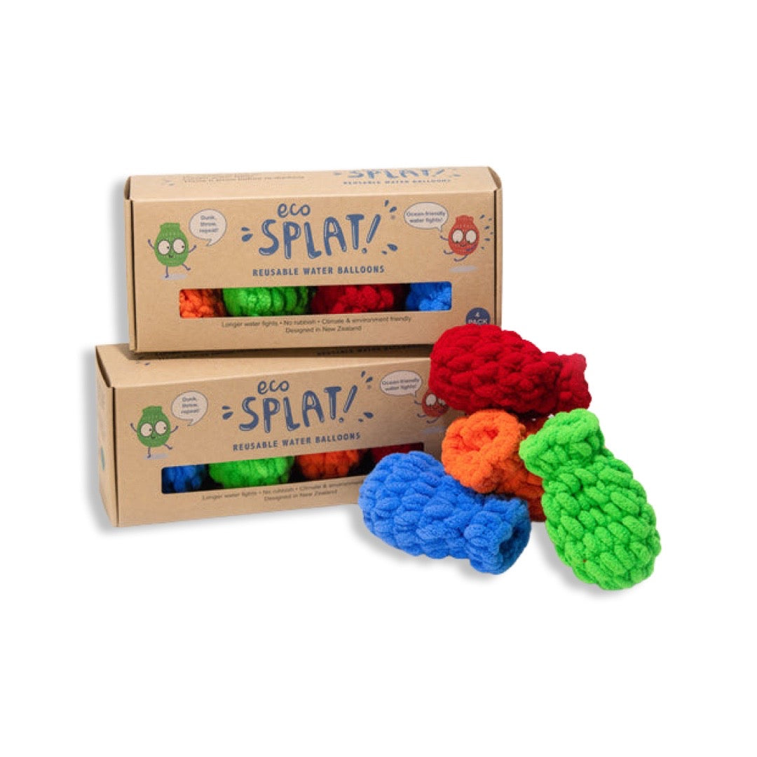 Introducing kiwi designed EcoSplat! Eco-friendly, reusable water balloons without the tricky tying, queuing at the tap or hours spent picking up rubbish left by their single use counterparts. Just dunk, throw and repeat for ocean friendly water fights!