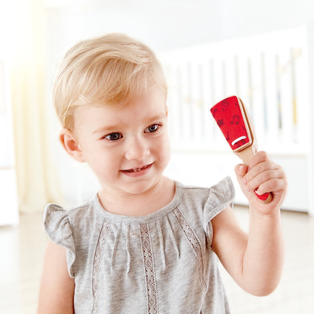 Create a steady beat and explore rhythm with this percussion duo set from Hape. Featuring a clapper and a guiro with a stick, this will ignite a a musical interest for young toddlers. Watch as toddlers explore different sounds as they run the stick up and down the guiro and explore the different beats of the clapper.