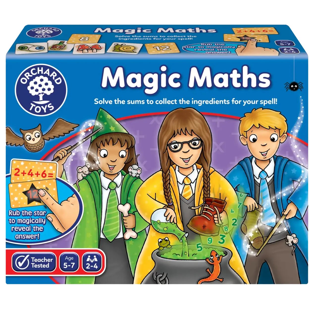 Magic Maths is an exciting and spellbinding maths game for children aged 5-7. Players take turns to solve the sums and fill their boards with yucky spell ingredients, from worm-infested cupcakes to brains and bogies! Once players have worked out the answer to the sum, the magic begins...by turning over their card and rubbing the heat sensitive patches to reveal if their answer is correct.