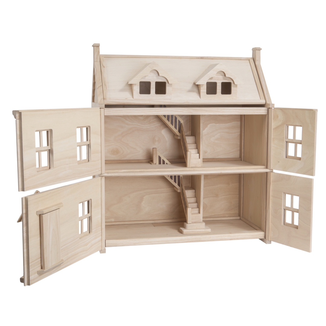 This whimsical Victorian Dollhouse by Plan Toys will sit proudly in any playroom. Fulfil your child’s dreams with this three storey dollhouse which is completely accessible with opening panels, making it easier for your child to play with their dolls and decorate their rooms with furniture. Realistic sashes slide open and shut creating a more homely feel. Additional attic space can also be transformed into any room your child desires. This beautifully crafted dollhouse is sustainably made from chemical-free rubberwood, formaldehyde-free glue, organic pigments and water-based dyes. You will find no nasties here, only clean fun for your precious little ones. A beautiful heirloom piece to encourage endless hours of imaginative pretend-play and story telling fun for pre-schoolers.