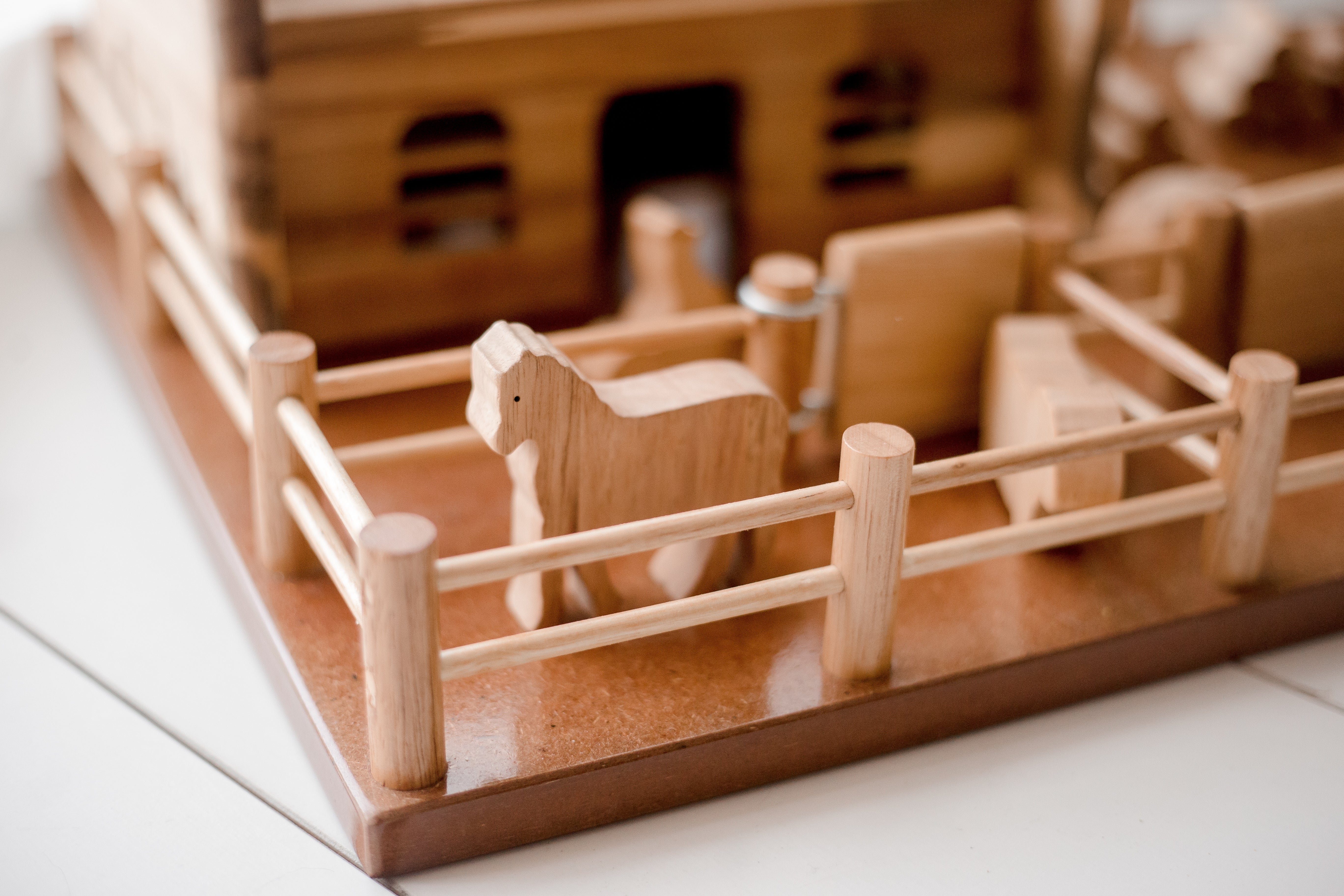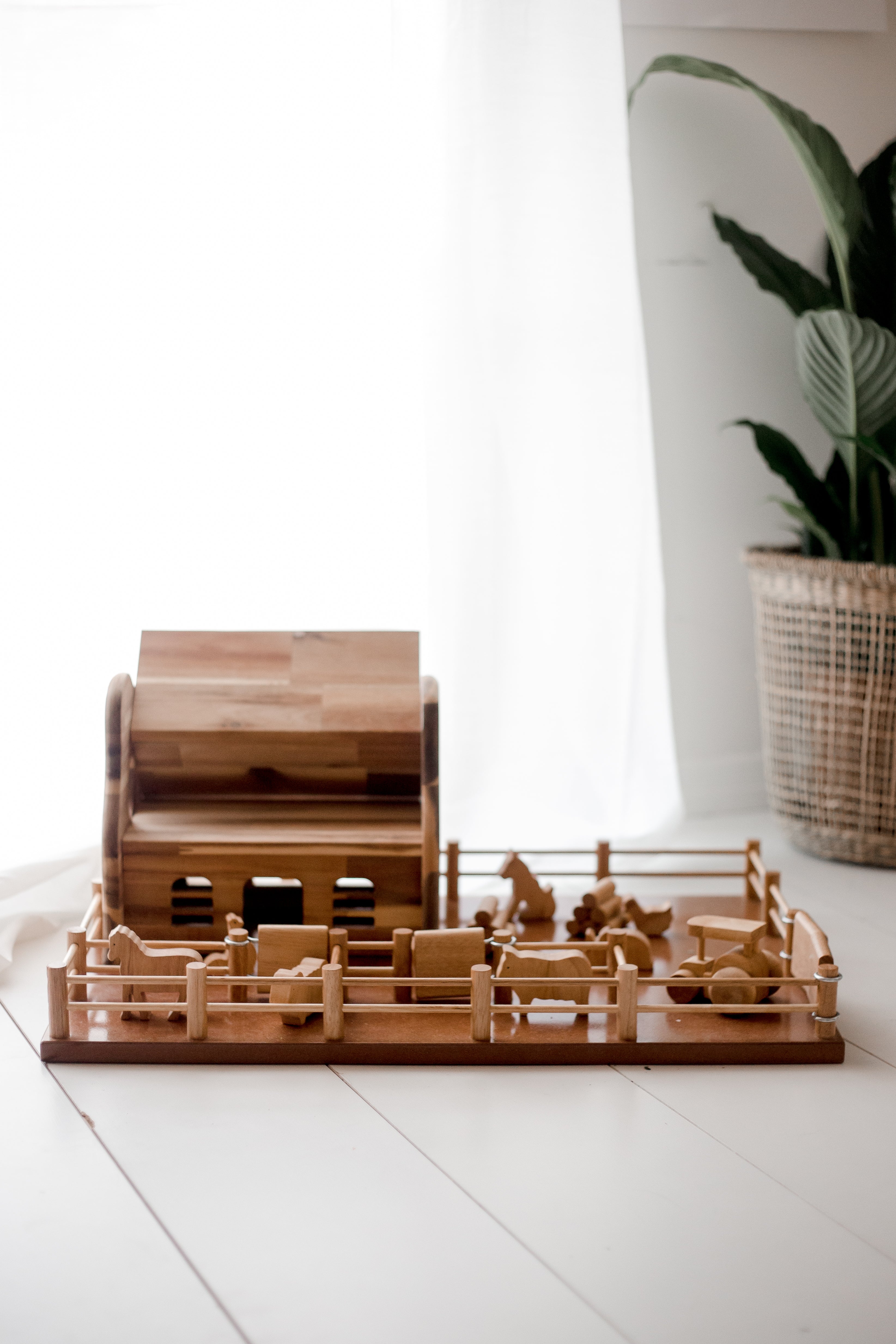 This beautifully made wooden barn house is perfect for pretend play. It is a signature piece in any setting. The house features a good size and a solid structure with the fence around it. It includes all the animals and tractor as can be seen in the picture. They are open ended toys which provide children with the perfect opportunity to explore their imaginative skills and can be added to any play space.