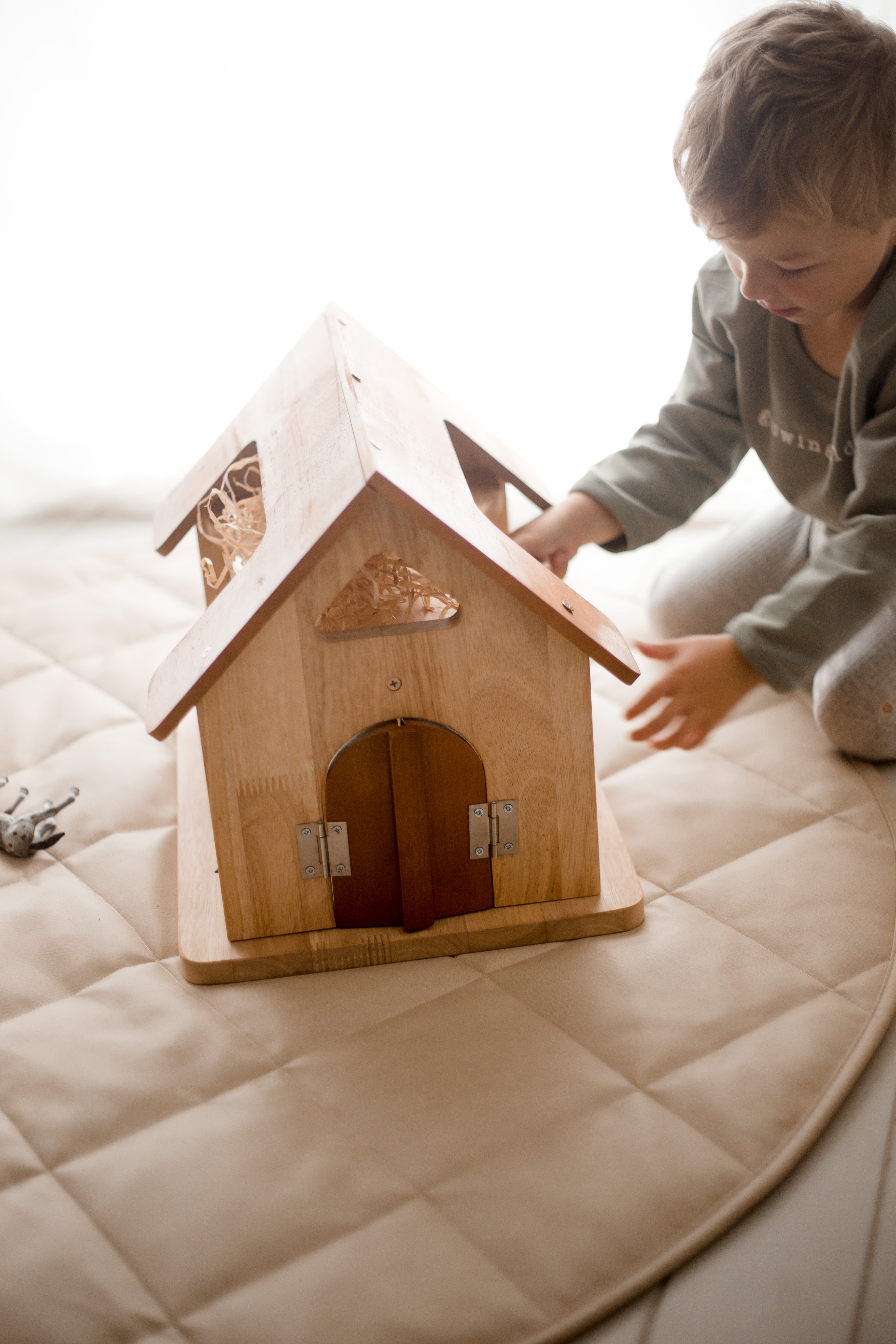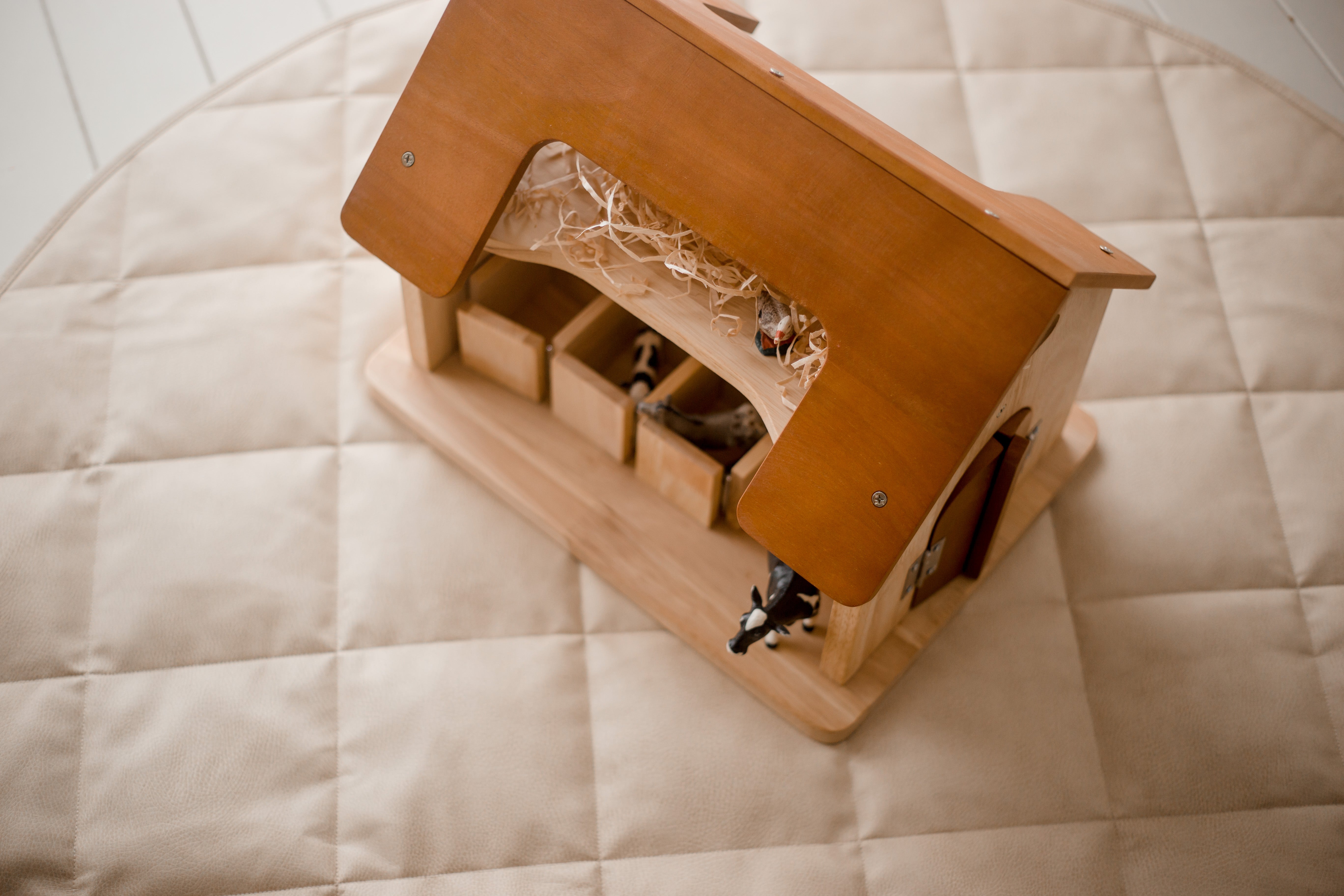 This gorgeous horse stable is a great choice for all those animal lovers. It houses up to 6 horses and has hinged doors which makes it interactive. It does not include the horses. This stable is a cute addition to your farm play experiences to promote imaginative play.