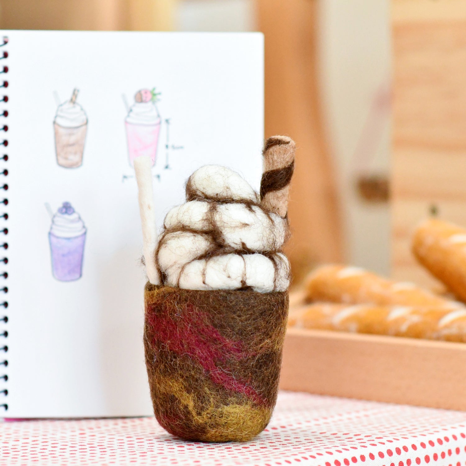 A delicious felt chocolate milkshake has just joined our new range of pretend play food! Each milkshake has been meticulously hand-felted, using different felting methods.
